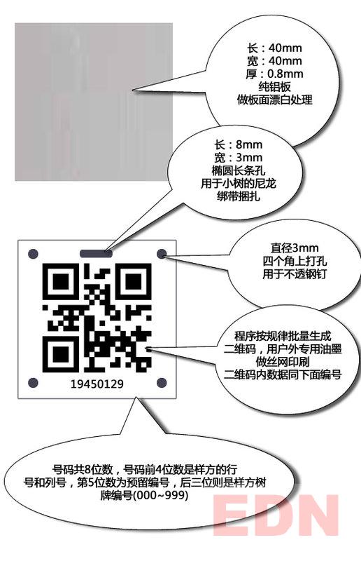 腐蝕油印工藝,二維碼在上方,下方加編號(hào),編號(hào)及二維碼為黑色、四角打釘孔