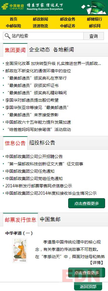 集團(tuán)要聞、企業(yè)動(dòng)態(tài)、各地新聞、信息公告、招投標(biāo)公告、郵票發(fā)行信息、中國(guó)集郵等欄目,如下圖所示: