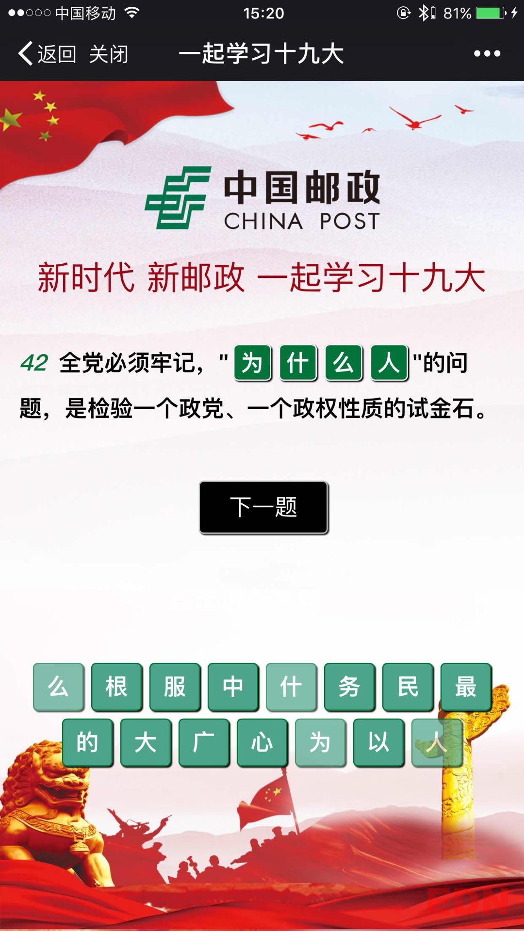 - 由我公司制作開發(fā)新時代 新郵政 一起學(xué)習(xí)十九大答題活動火熱進(jìn)行中!