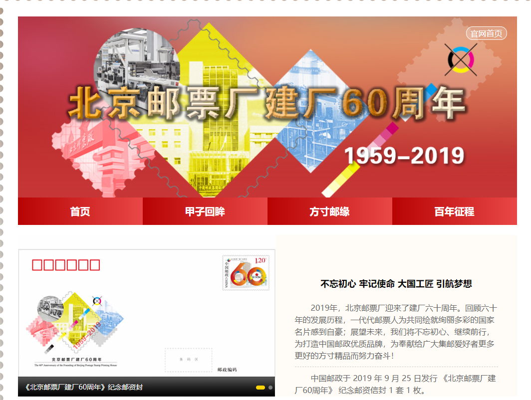 2019年,北京郵票廠迎來了建廠六十周年。回顧六十年的發(fā)展歷程,一代代郵票人為共同繪就絢麗多彩的國家名片感到自豪;展望未來,我們將不忘初心、繼續(xù)前行,為打造中國郵政優(yōu)質(zhì)品牌,為奉獻(xiàn)給廣大集郵愛好者更多更好的方寸精品而努力奮斗!