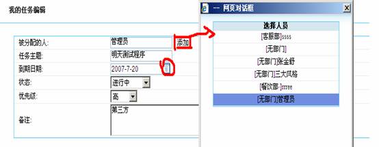看到圖三后,就可以添加任務(wù)了,在被分配的人后面的添加是選擇你安排的任務(wù),是分配給那個(gè)用戶(hù),添加完成后,就跳轉(zhuǎn)到了圖二頁(yè)面。