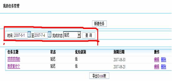 查詢(xún)的條件是時(shí)間段和任務(wù)的完成狀態(tài),點(diǎn)擊查詢(xún)即可。
