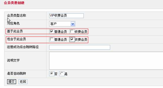 我們讓它基于普通會員,包含于收費會員,包含于的意思就是說此新建會員類型包含所選擇的會員類型的所有功能。