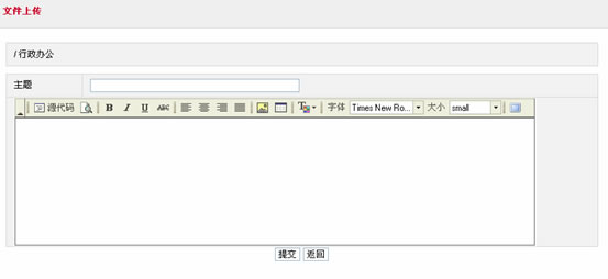 “新建/上傳”文件,填寫文件的主題、該文件的內(nèi)容和瀏覽上傳多個(gè)文件;如圖:文件內(nèi)容可以進(jìn)行多媒體編輯,此功能和Word一樣使用方便。