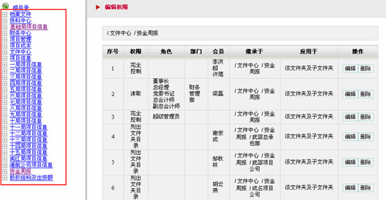 但是我們所看的功能操作并不是所有人員都有,部門、角色等條件都起到了區(qū)分權(quán)限的作用,具體請參考“文件權(quán)限管理”。