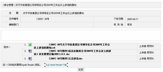 功能介紹:用戶可以查看到對應欄目下的文件的主題、編制部門、下發(fā)日期、文件編號等信息,并根據(jù)權(quán)限下載或上傳相關(guān)文件或?qū)ξ募r行修改。