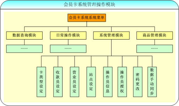 會員卡系統(tǒng)中的系統(tǒng)管理模塊主要是對系統(tǒng)中的各種信息進行設(shè)置,分為卡類型設(shè)定、收款員設(shè)定、營業(yè)員設(shè)定、站點設(shè)定、操作員信息等多個部分,是會員卡管理系統(tǒng)中一個重要的組成部分。