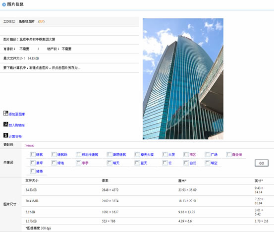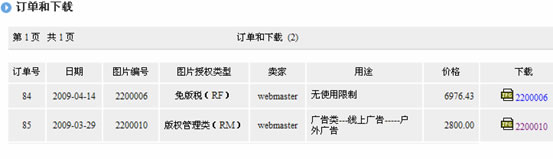 上圖為顯示所購買圖片的各種信息并提供該圖片的下載,如果購買授權(quán)類型為RM類型的圖片則下載該圖片的原始圖片,如為RF的圖片則下載的是該會員在計(jì)算圖片價(jià)格時(shí)所選擇的圖片尺寸大小相對應(yīng)的圖片。