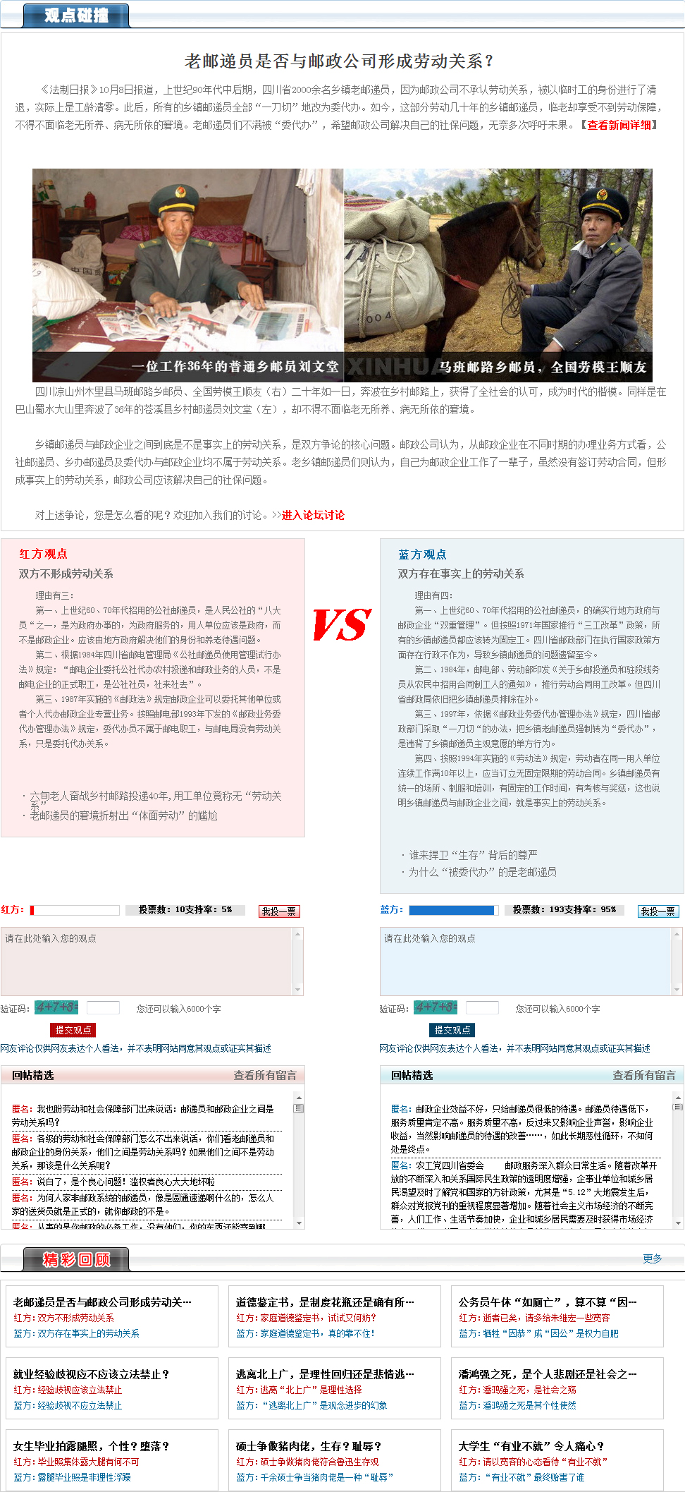 本系統(tǒng)功能可以實現(xiàn)投票支持及觀點留言、查看本觀點的其它留言,并能統(tǒng)計投票數(shù)量及所占比率,同時下方還可以分別提取反正各方的精華回貼等。