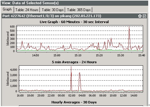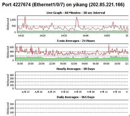 直接點擊一個IP對應的端口項,可以看到改IP端口的流量圖(包括最近1小時、一天、一個月、一年的流量圖示)