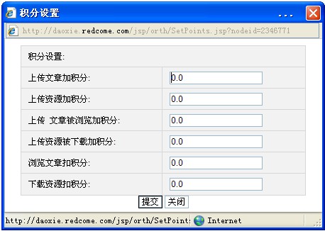 積分設(shè)置:針對于已稿件給會員的加、減積分設(shè)置。彈出窗口進行積分設(shè)置,如下圖所示: