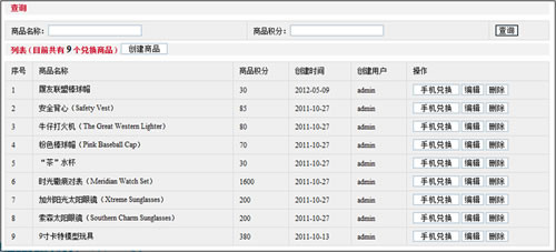 管理員在后臺(tái)可對(duì)所有積分商品進(jìn)行統(tǒng)一管理:創(chuàng)建、修改、刪除,管理員并可針對(duì)新上傳的積分商品給用戶手機(jī)發(fā)送商品兌換通知。