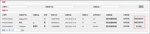 商品收貨:兌換訂單發(fā)完貨后,由會(huì)員確認(rèn)收貨,會(huì)員確認(rèn)收貨后即此訂單交易完成。在一定時(shí)期內(nèi)如會(huì)員未做收貨確認(rèn),管理員可修改收貨狀態(tài),完成訂單交易。