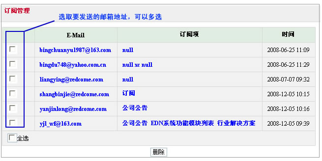 第二步,管理員在訂閱管理頁面上選取要發(fā)送的郵箱地址