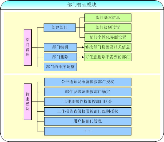 通過部門的創(chuàng)建與管理,形成分部門授權(quán)體系,比如在公告通知管理中可以按部門分配查看公告的權(quán)限;在全體人員列表中可以按部門列出人員,方便查找與交流;在工作流中可以按部門進行流程的定義和權(quán)限分配;在工作日志的上報中,員工的工作日志可以按部級別提交給相關(guān)領(lǐng)導(dǎo)查閱、發(fā)送內(nèi)部郵件時可以按部門范圍進行群發(fā),用戶按部門管理,等等。