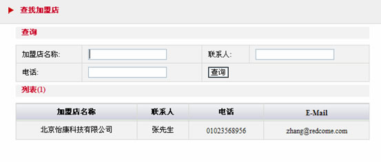 上圖可以再添加加盟店時(shí)候,可以選擇,點(diǎn)擊后面的查找按鈕,可以列出選擇的加盟店信息,如下圖: